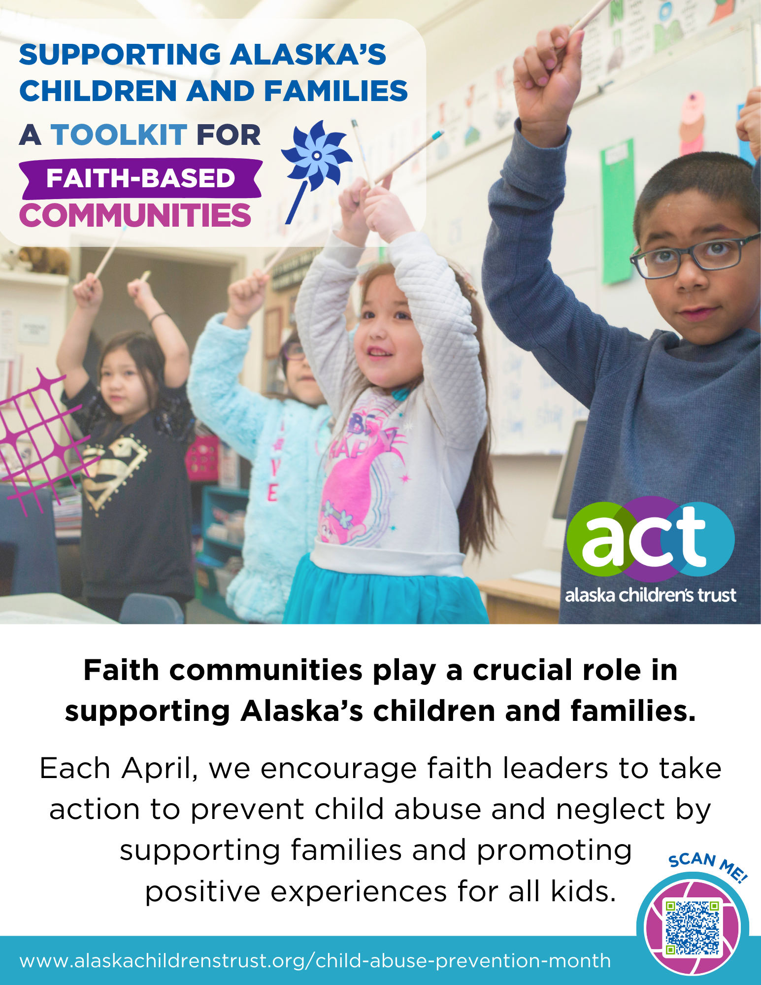 ACT has created a toolkit to involve faith-based communities in supporting Alaska’s children and families in child abuse and neglect prevention. But we need YOUR help to get feedback on it! Please review the PDF here and email any feedback you have to Aakriti KC, Alaska Fellow at ACT, here.